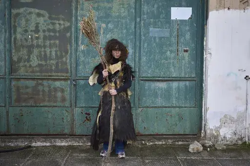 “We give society a jolt … and try to take away their misfortunes, their problems, to lift their spirits so they can feel something,” said Giorgos Papaioannou, a 29-year-old aluminum plant worker known during carnival as president of Distomo’s Bell People.