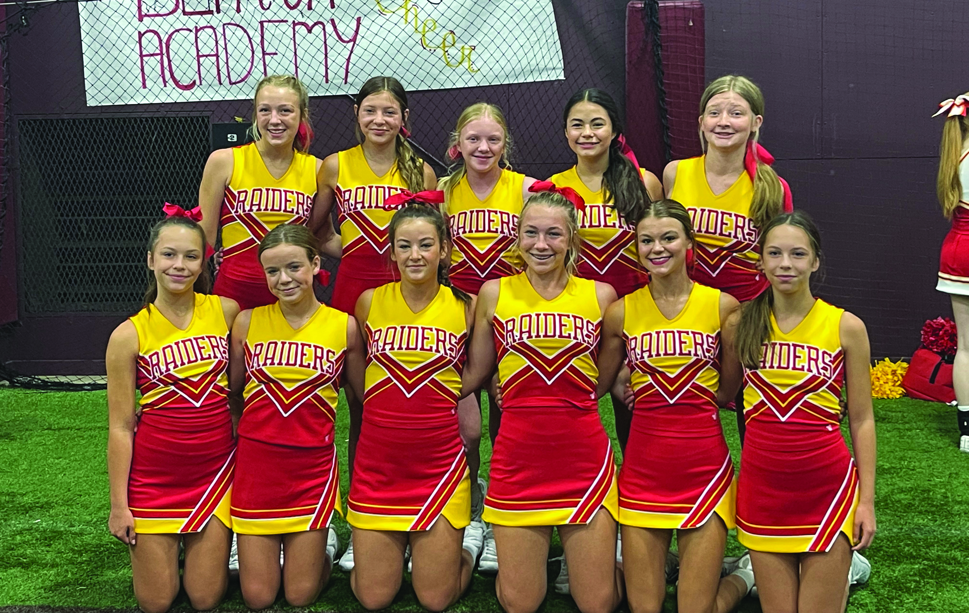 The Benton Academy cheerleaders recently attended UCA cheer camp from June 7-10, 2022 at Mississippi State University. The final day the squads competed and brought home several team trophies and four individual medals. The Junior High Squad placed third in the Camp Routine while the Varsity Cheer Squad won second place in the Camp Routine and first place in the Game Day Competition. Joining the ranks of the UCA All-American team were Junior High All-American Maci Lowry and High School All-Americans Maizey Ketchum, Isabella Magyar, and Whitney Whitworth. Members of the junior high team pictured below are, front row right to left, Leta Greco, Ana Paige Beith, Maci Lowry, Brynn Blackstock, Emma Middleton, Lura Greco; back row right to left, Ava Grace Meeks, Robin May, Addy Cader, Sidney Davis, and Perry Kate Kraft . Not pictured were Coaches Hanna Dean and Etta Saxton.(Courtesy Photo)
