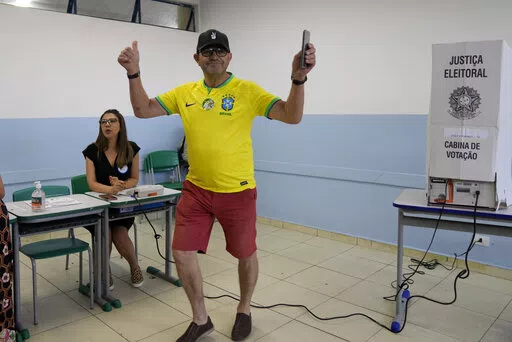 SAO PAULO (AP) — Soon after casting his vote in Brazil’s presidential election in Rio de Janeiro on Sunday, incumbent Jair Bolsonaro was hoisting a silver trophy into the air alongside newly crowned soccer champions.