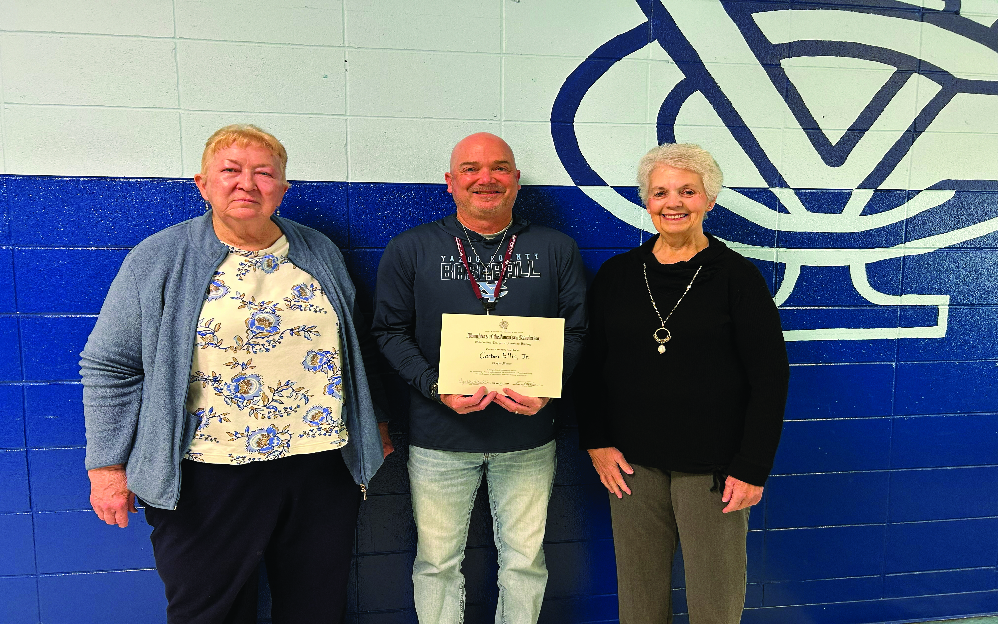 The Yazoo Chapter of the Daughters of the American Revolution presented the DAR American History Teacher of the Year Award to Yazoo County High School Teacher Coach Corbin Ellis.