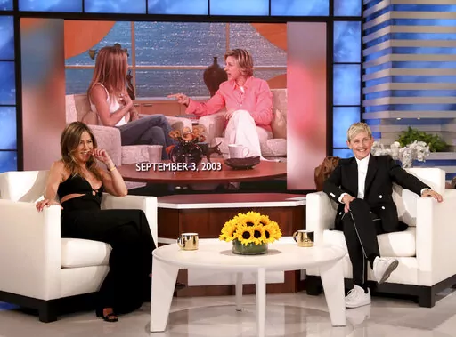 Aniston, who as the first guest on the show's first episode gave DeGeneres a “Welcome” doormat, arrived with another that read, “Thanks for the memories." DeGeneres noted the “Friends” star has been on the show a total of 20 times.