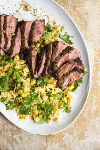 Spice-Crusted Steak with Mashed Chickpeas