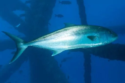 Greater amberjack are big silver fish named for the long amber line along each side from nose to first dorsal fin. They can grow up to 6 feet (1.8 meters) long and 200 pounds (90 kilograms), though up to 40 pounds (18 kilograms) is most common, according to NOAA Fisheries.