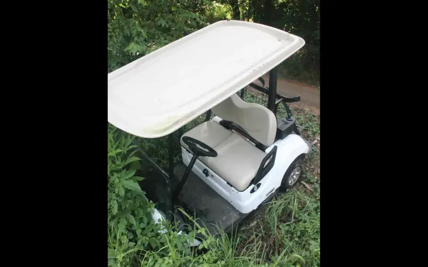 A golf cart was also driven into a ditch, where the suspects left a mountain of beer cans.