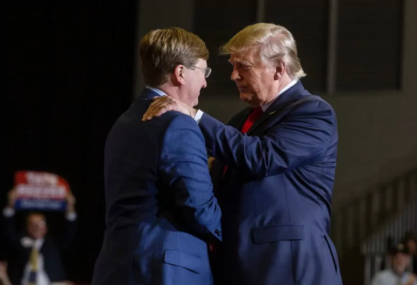 In 2019, during the campaign rally in Tupelo, Trump urged Mississippians “to send a signal (about his impeachment) by sending a terrific new Republican governor to Jackson.”