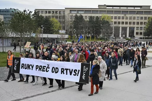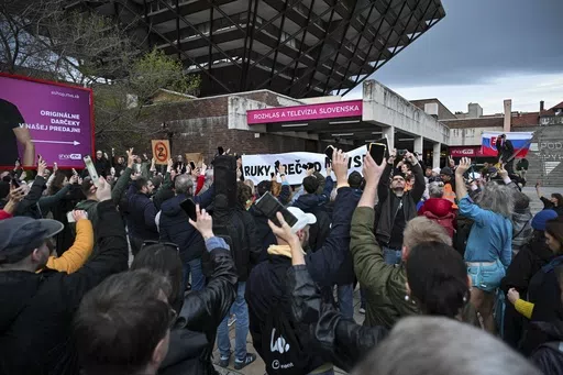 BRATISLAVA, Slovakia (AP) — Protesters in Slovakia formed a human chain around the country's public television and radio building Wednesday in anger over a takeover plan by the government whose populist, pro-Russia prime minister recently labeled several private media outlets his enemies.