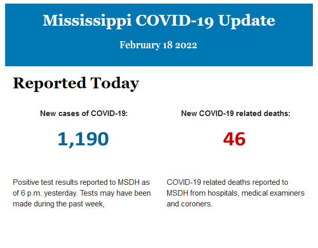 Listed below is the daily COVID-19 update for the state of Mississippi.