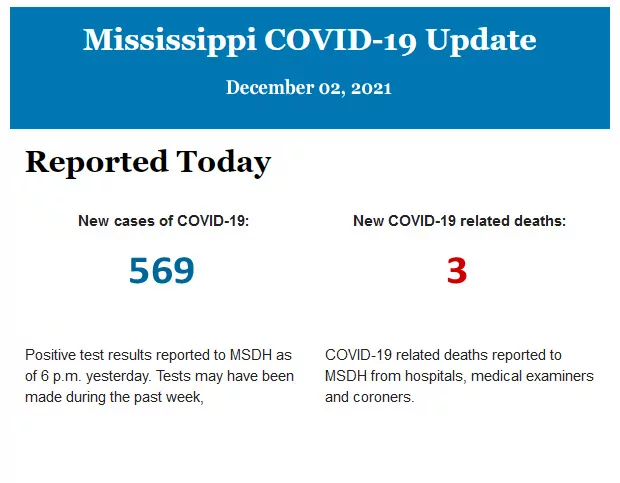 Listed below is the daily COVID-19 update for the state of Mississippi.