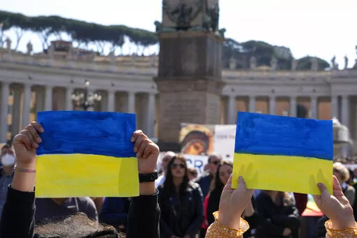 “In the name of God, I ask: ‘Stop this massacre,’” Francis said, sparking applause from the pilgrims, tourists and Romans, some of whom held Ukrainian flags, in the square.