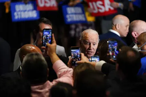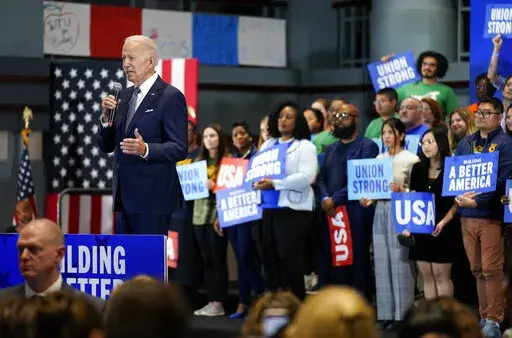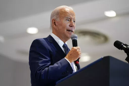 “If Republicans win control of the Congress abortion will be banned,” Biden said. He also criticized other GOP lawmakers for proposals to require reauthorization votes for Social Security and Medicare and opposition to gun control laws and efforts to lower prescription drug costs.