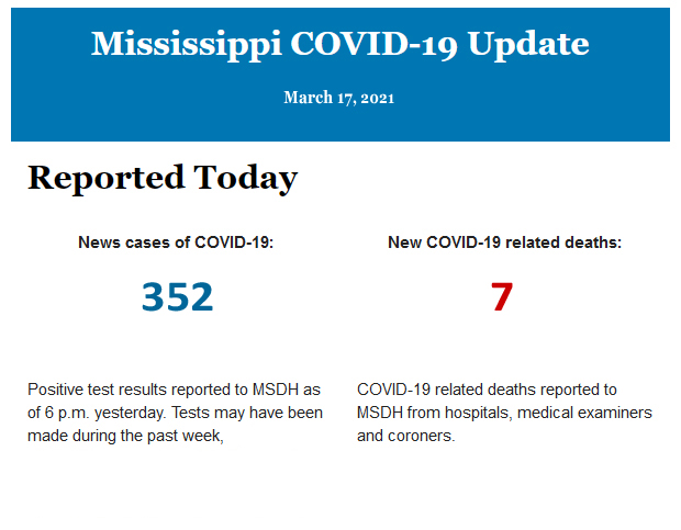 Listed below is the daily COVID-19 update for the state of Mississippi.