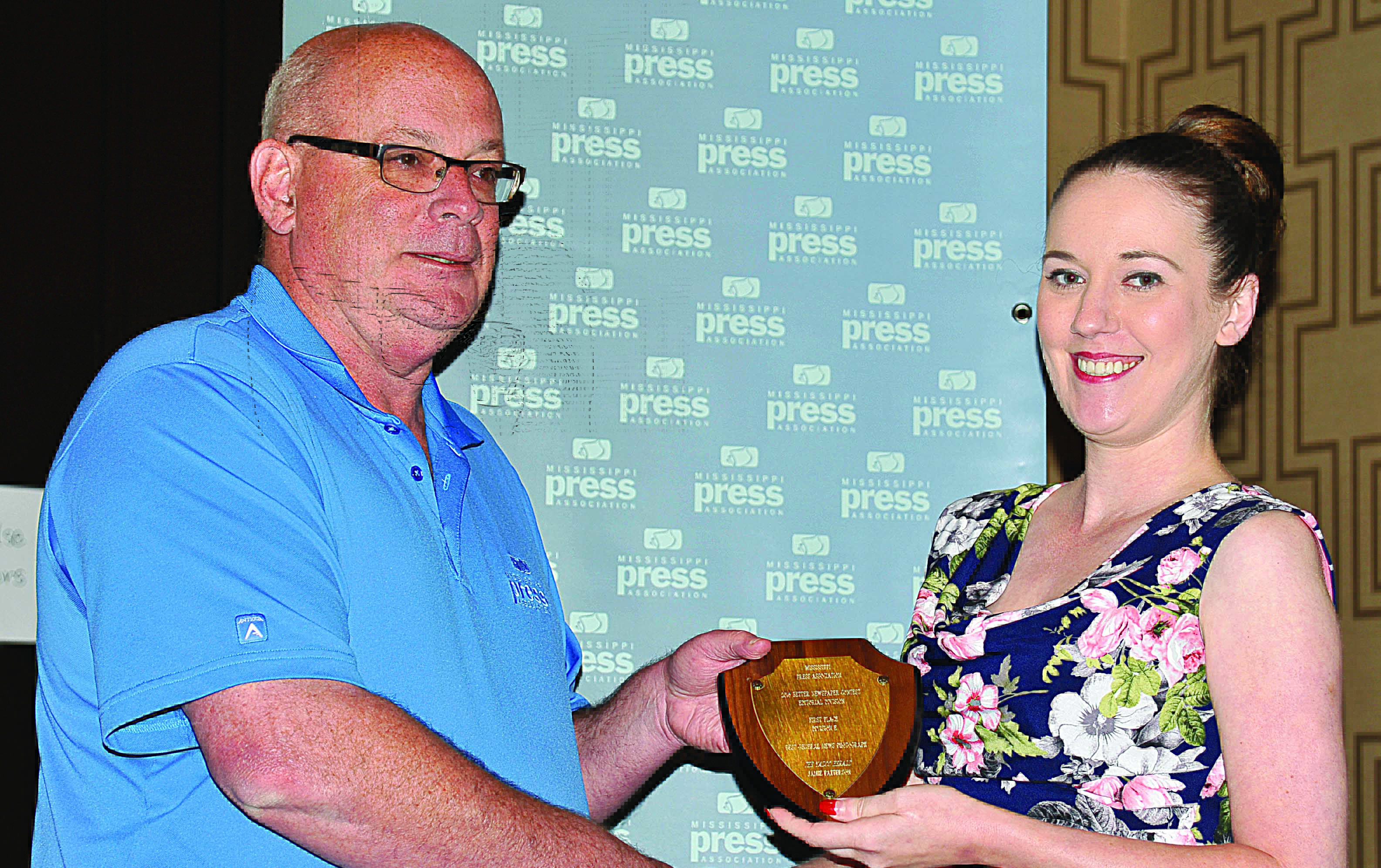 Herald Managing Editor Jamie Patterson won the Bill Minor Award for Best General News Coverage Saturday, topping all Mississippi weekly newspapers.