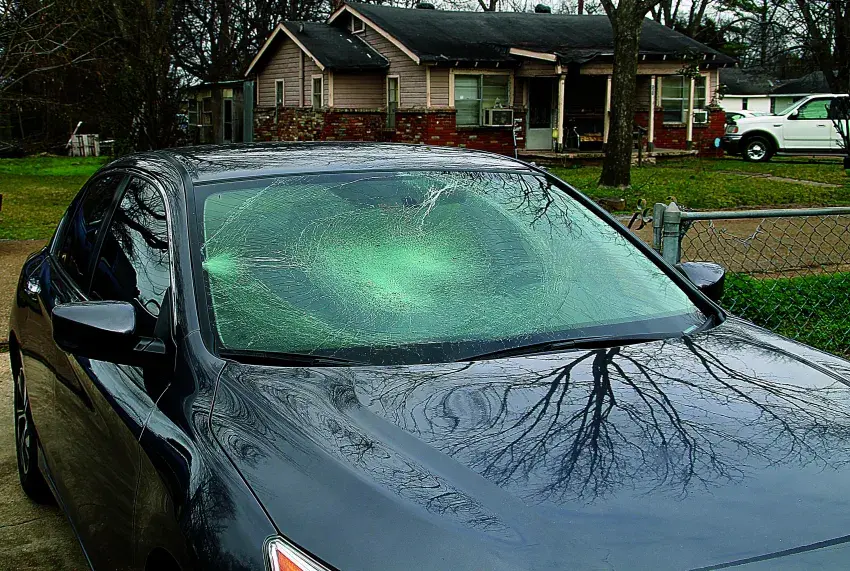During the first incident his car was damaged on the passenger side, a window was broken, and the windshield was smashed.