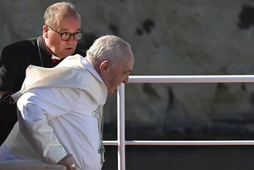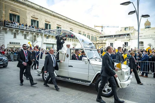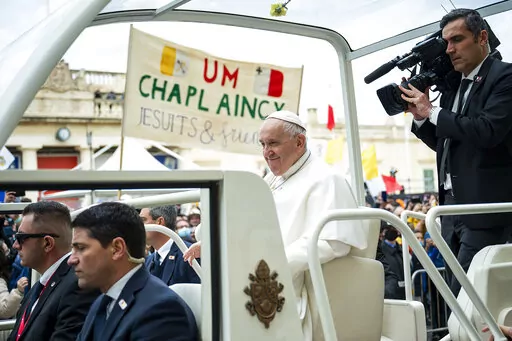 Francis also said the war had pained his heart so much that he sometimes forgets about the pain in his knees. Francis has been suffering for months from a strained ligament in his right knee. The inflammation got so bad that the Vatican arranged for a tarmac elevator to get him on and off the plane for Saturday’s flight to Malta, and his limp was more pronounced Saturday.