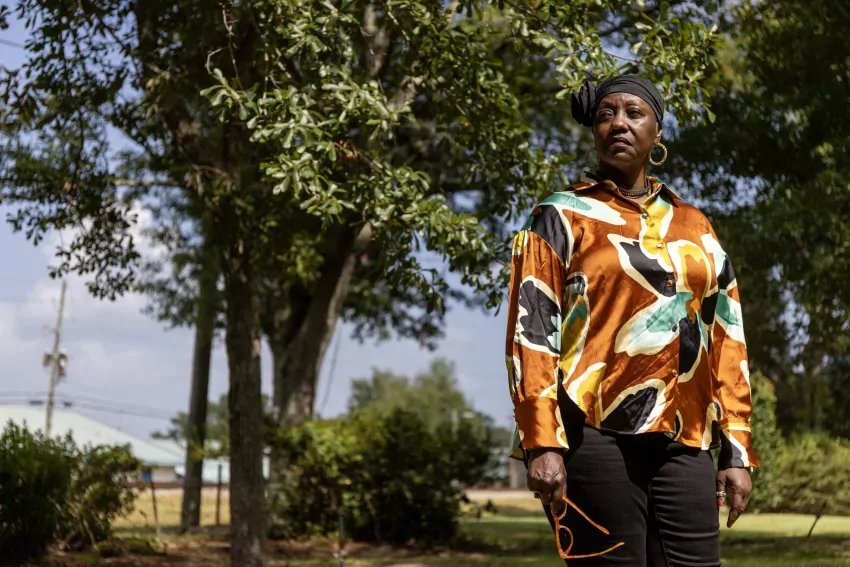 Mitzi Reed, invasive species coordinator for the Native American Fish and Wildlife Society, in one of her favorite places, a swamp area surrounding Beaver Creek Road, adjacent to the Pearl River on Choctaw land, Friday, Nov. 17, 2023. Reed is also a biologist, conservationist, and a member of the Mississippi Band of Choctaws, helping to preserve Choctaw culture and customs, and inspiring the youngsters to get outside. Credit: Vickie D. King/Mississippi Today