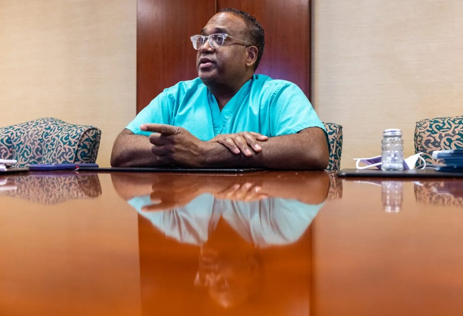 OB/GYN Dr. Nina Ragunanthan poses for a portrait inside of Delta Health Center in Mound Bayou, Miss., Thursday, July 14, 2022. Credit: Eric Shelton/Mississippi Today
