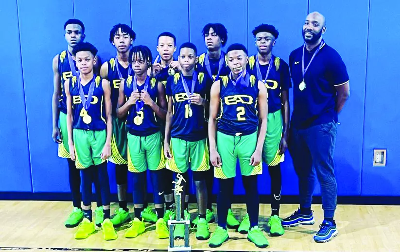 The EAD Mississippi 14U team recently competed in a tournament in Dallas, Texas and went undefeated en route to the tournament championship. Pictured above from left are Jahiem Sims, Dre’dyn Freeman, Jeff Webb, B.J. Jones, Markeith Moore, Monta Lewis, Kaleb Lowe, A.J. Ingram, Braxton Ward, and coach Tenseley Cowan.