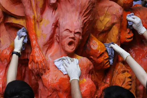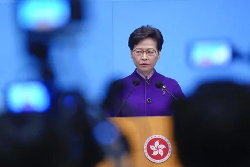 Police officers guard outside the building of Stand News' office in Hong Kong, Wednesday, Dec. 29, 2021. Hong Kong police arrest six members of online news outlet for sedition in continuing crackdown on dissent. Hong Kong police say they have arrested six current and former staff members of an online media company for conspiracy to publish a seditious publication. (AP Photo/Vincent Yu)