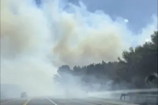 Rough satellite data indicated that fire and smoke stretched roughly 2.5 miles (3 kilometers) along Sunrise Highway, according to NASA’s Fire Information for Resource Management System.